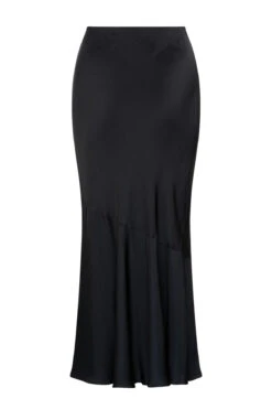 Our model Emily wears the Aiva Skirt in a size 10 with our Len Sweater in Black and Anneli Linen Trench Coat in Black measures: