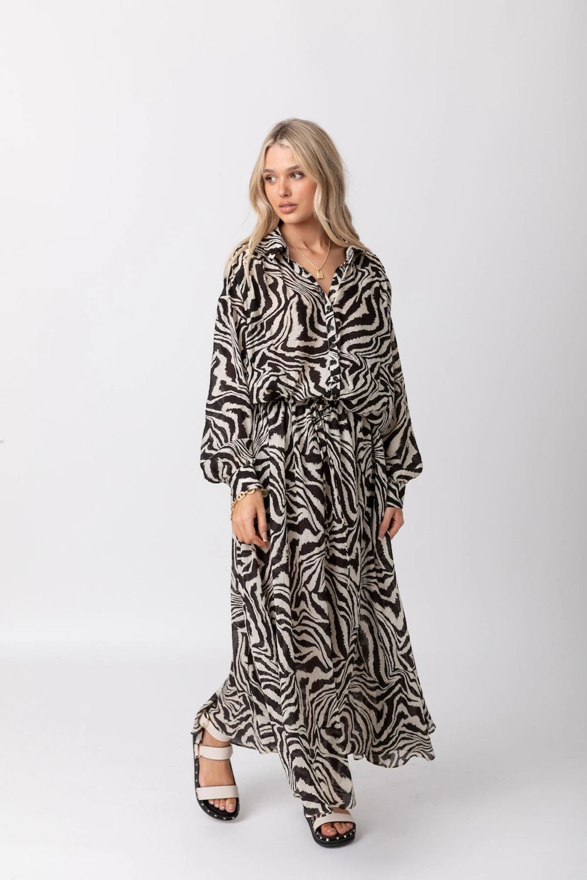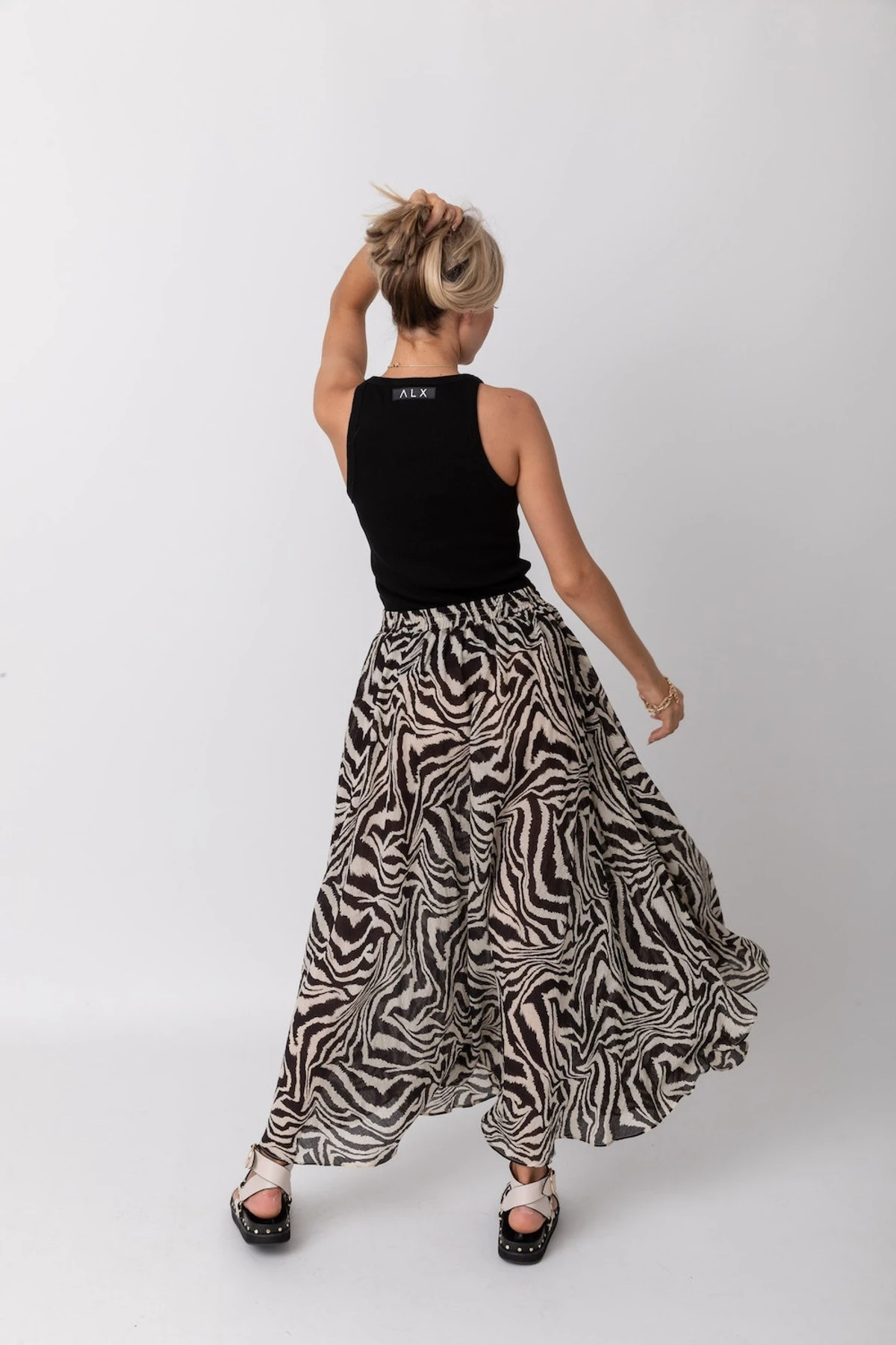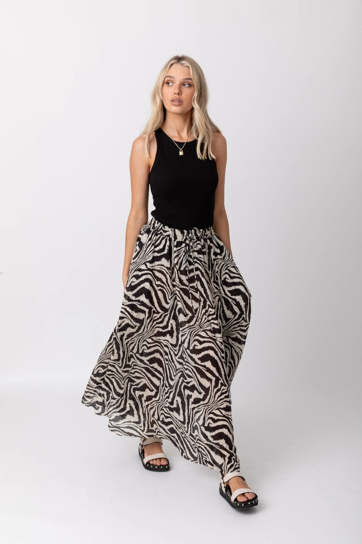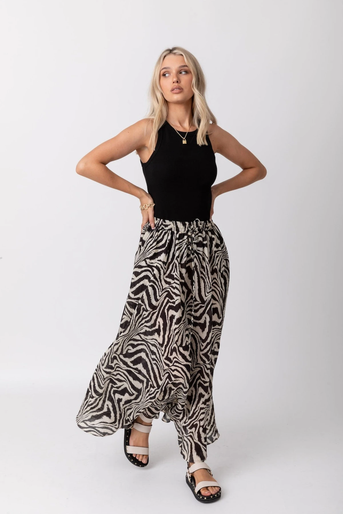 Turn heads everywhere you go with the Antonio zebra maxi skirt. Let its edgy yet classy design elevate your chic look into a stylishly fun one. Pair it with a plain black tank like our Benton tank, or go all-out chic by matching it with the Houston zebra shirt.