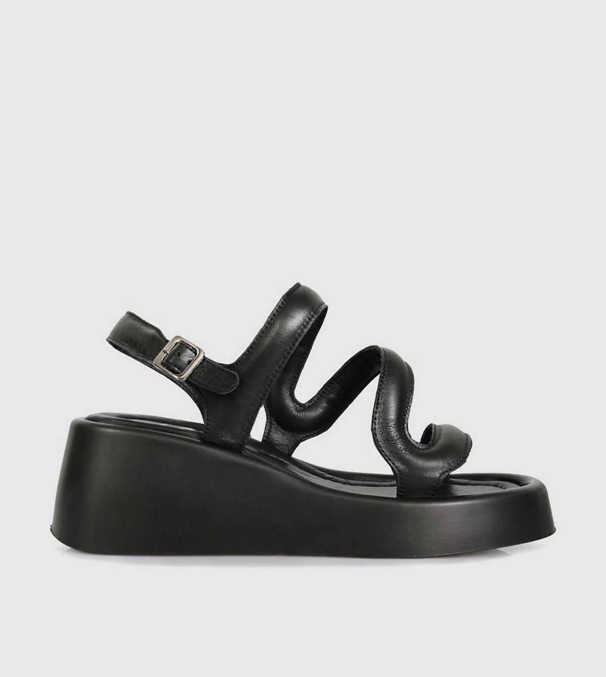 The Astrid Flatforms by S Sempre di are the perfect combination of fashionable and comfy. The squiggle padded leather upper ensures a secure fit, while the extra light sole and padded footbed guarantee maximum comfort. The wedged sandal design ensures a casual, chic look, perfect for any occasion.