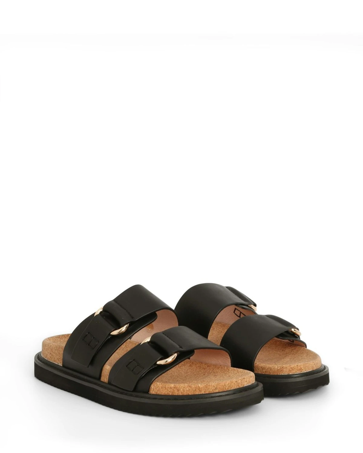 Allow us to introduce our newest addition, the Bambi sandal, designed with your comfort in mind. This charming design features a soft, rounded toe and two straps that provide both unmatched comfort and style. The Bambi sandal is also crafted with a cork sole, ensuring a comfortable experience even on hot summer days. Pair it effortlessly with a maxi dress or linen trousers to create the perfect summer outfit.