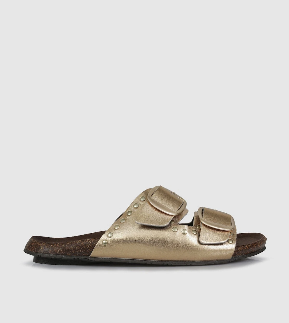 The Coralee Slide sandals boast an iconic double buckle, crafted from high-quality leathers and finished with oversized, burnished metal buckles and studded detail. The cork finish foot-bed provides superior support and comfort for whatever adventure awaits. Made in Italy with expert craftsmanship and quality materials, these sandals are sure to last.