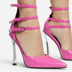 EGO Tour Lace Up Knotted Strap Cage Detail Square Toe Thin Stiletto Heel In Lilac Faux Leather