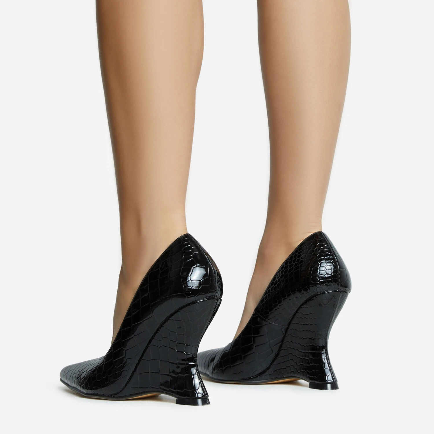 EGO Farah Ankle Strap Square Toe Gold Chain Heel In Black Faux Leather