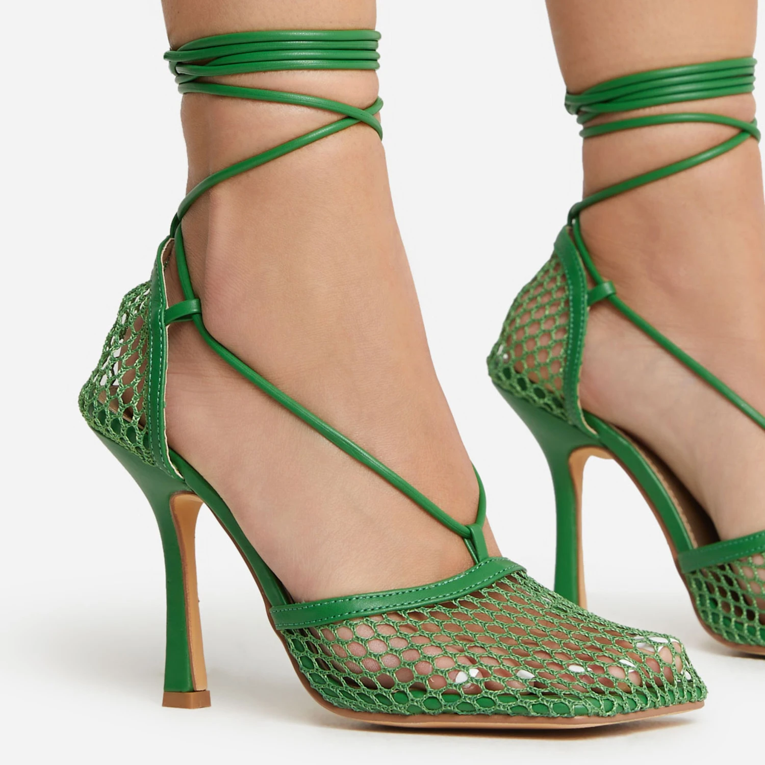 Step up your game in New-Me fishnet lace up heels in green. Team these with a white dress and mini bag to make a fashion statement. We’re obsessed, are you?!