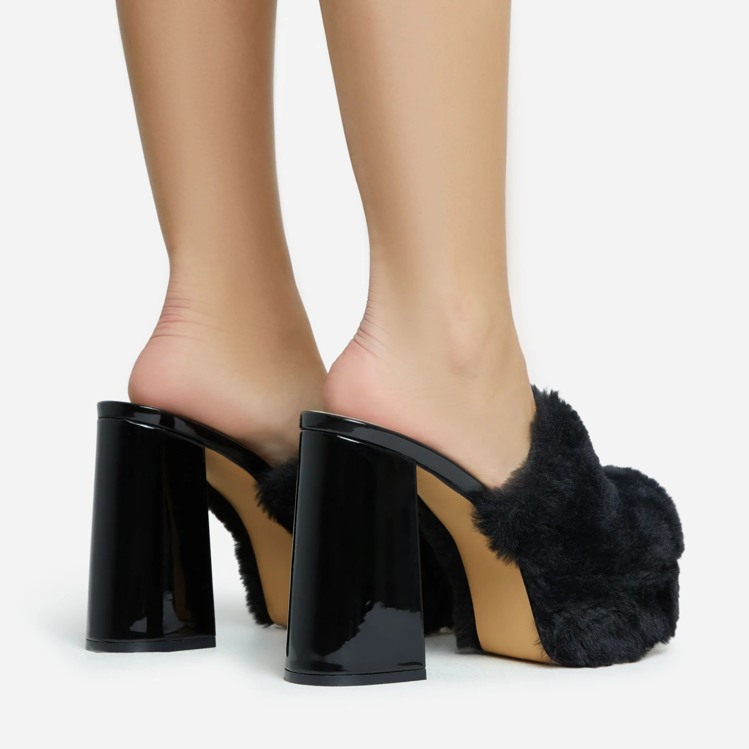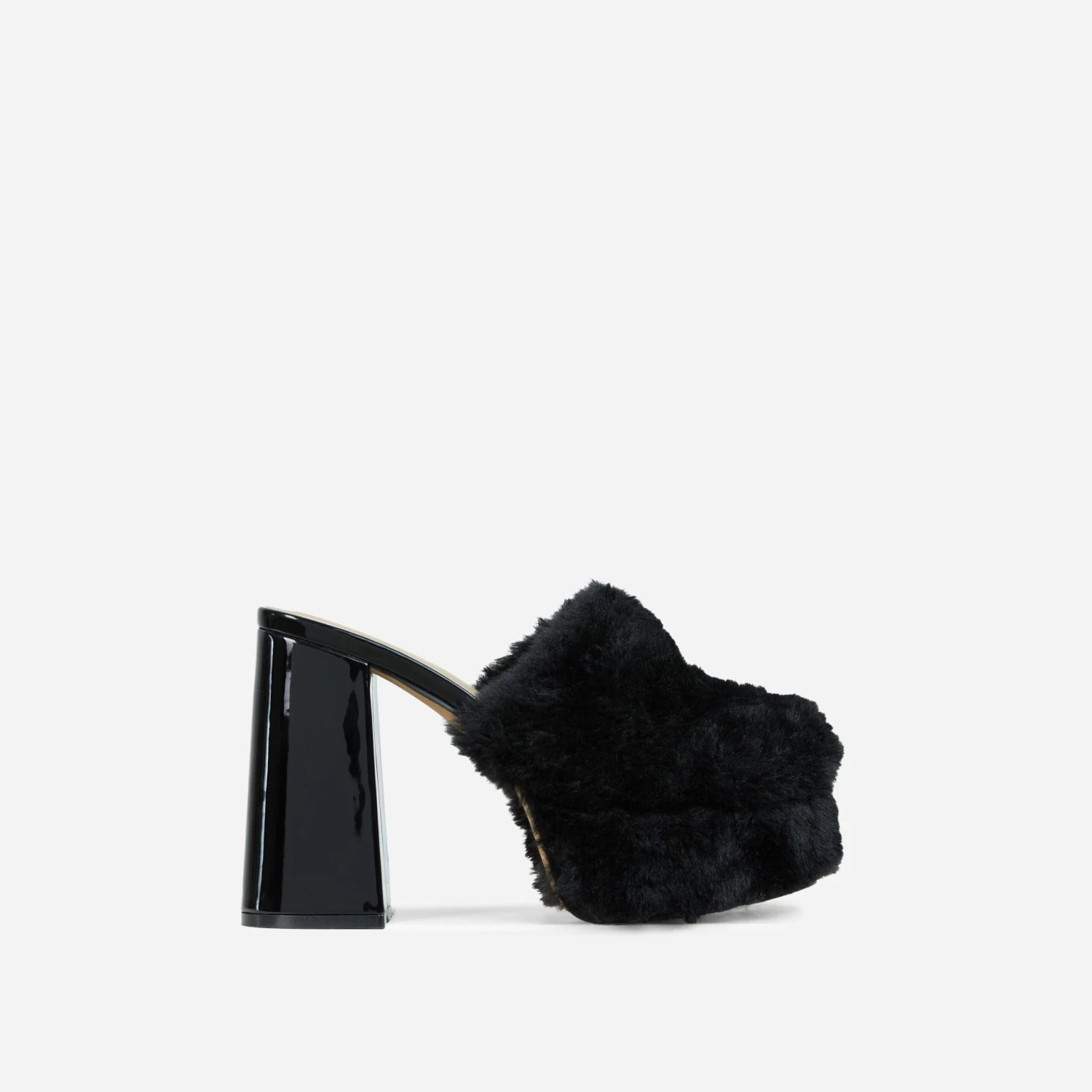 EGO Sugar-Fire Diamante Bow Perspex Strap Square Toe Platform Flared Block Heel In Nude Patent