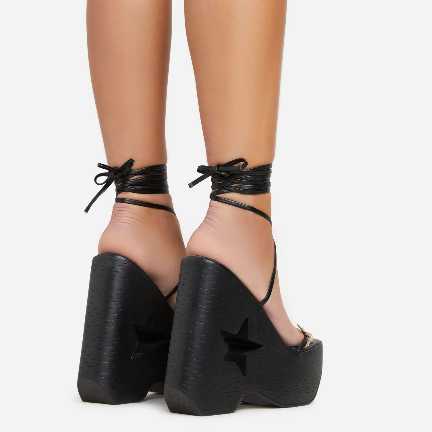 EGO Shine-Bright Lace Up Gem Detail Square Toe Clear Perspex Statement Heel In Pink Faux Leather