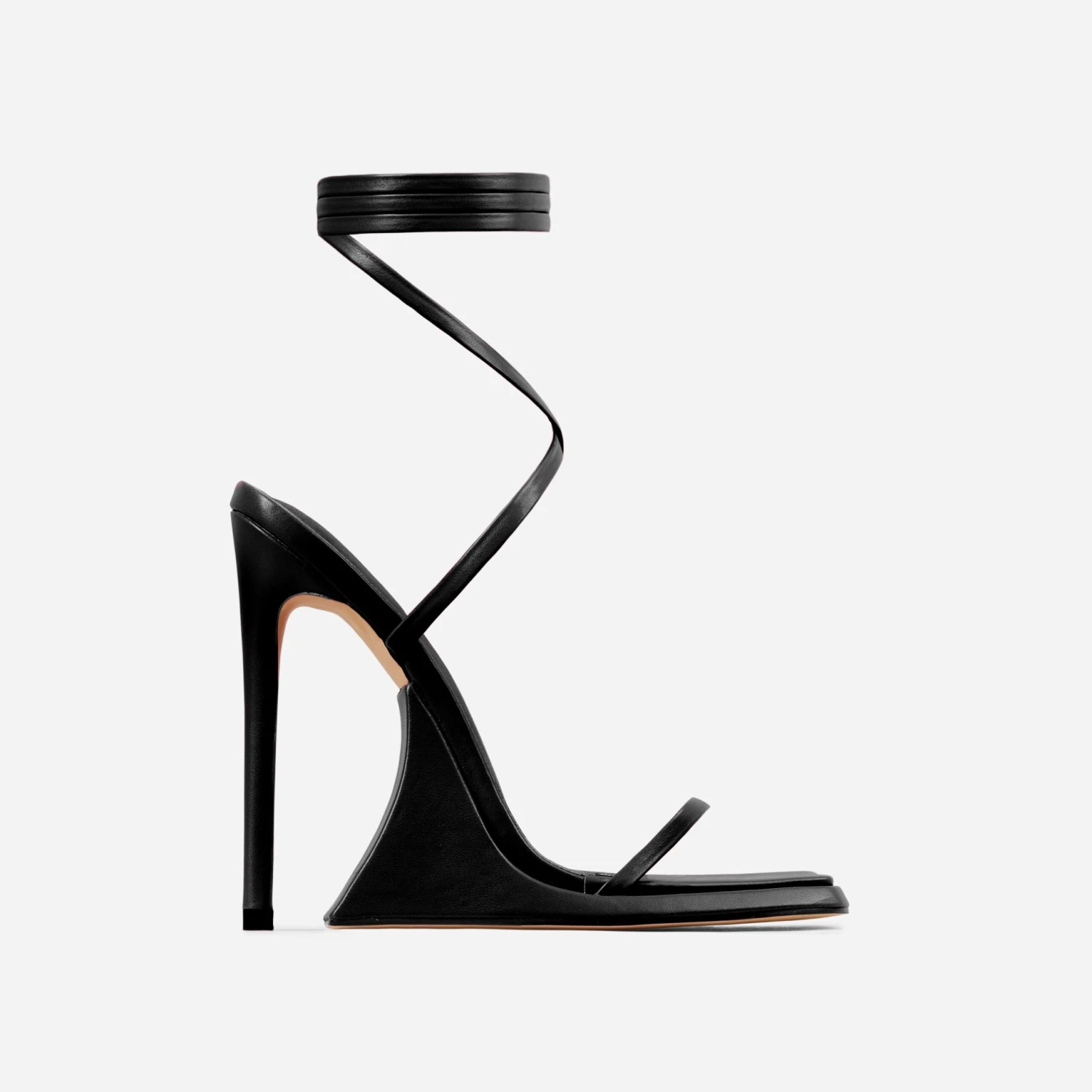 Girl, stand out from the crowd in these statement heels. Featuring a black faux leather material, with a sculptured platform, a square toe, stiletto heel and a lace up finish.