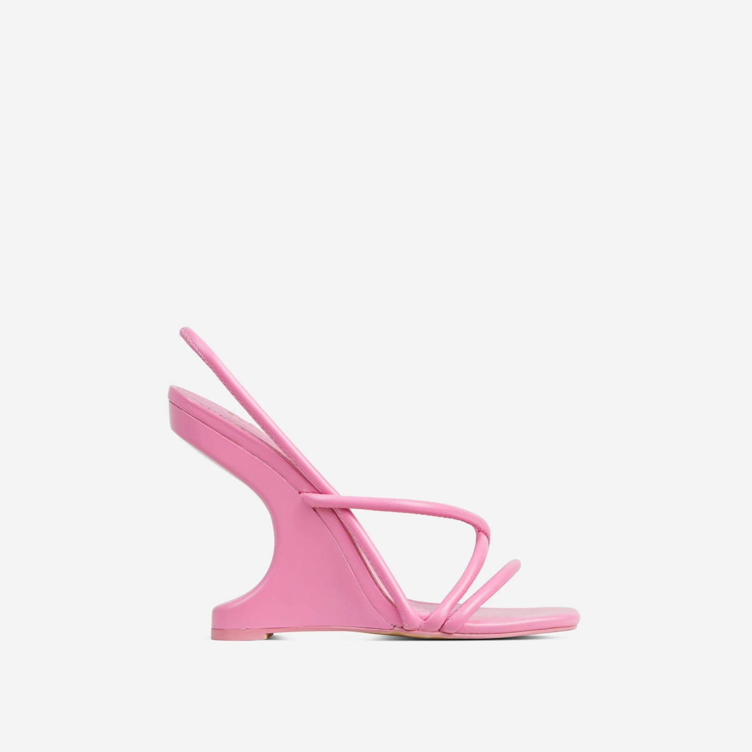 Add a boujee touch to your girls night out look. Featuring a pink faux leather material, with strappy detailing, a square toe, slingback design and a cut out wedge heel.