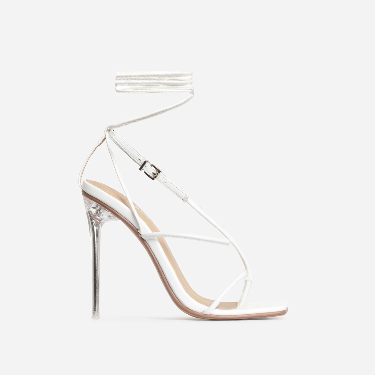 EGO True Square Toe Lace Up Clear Perspex Heel In White Faux Leather