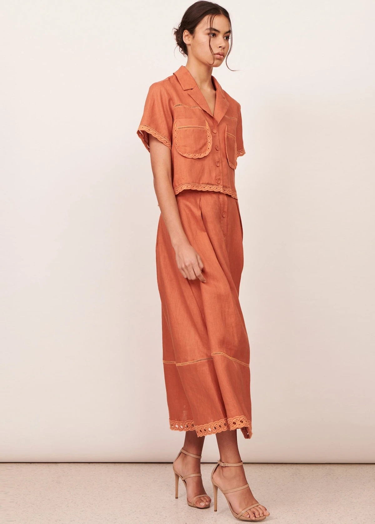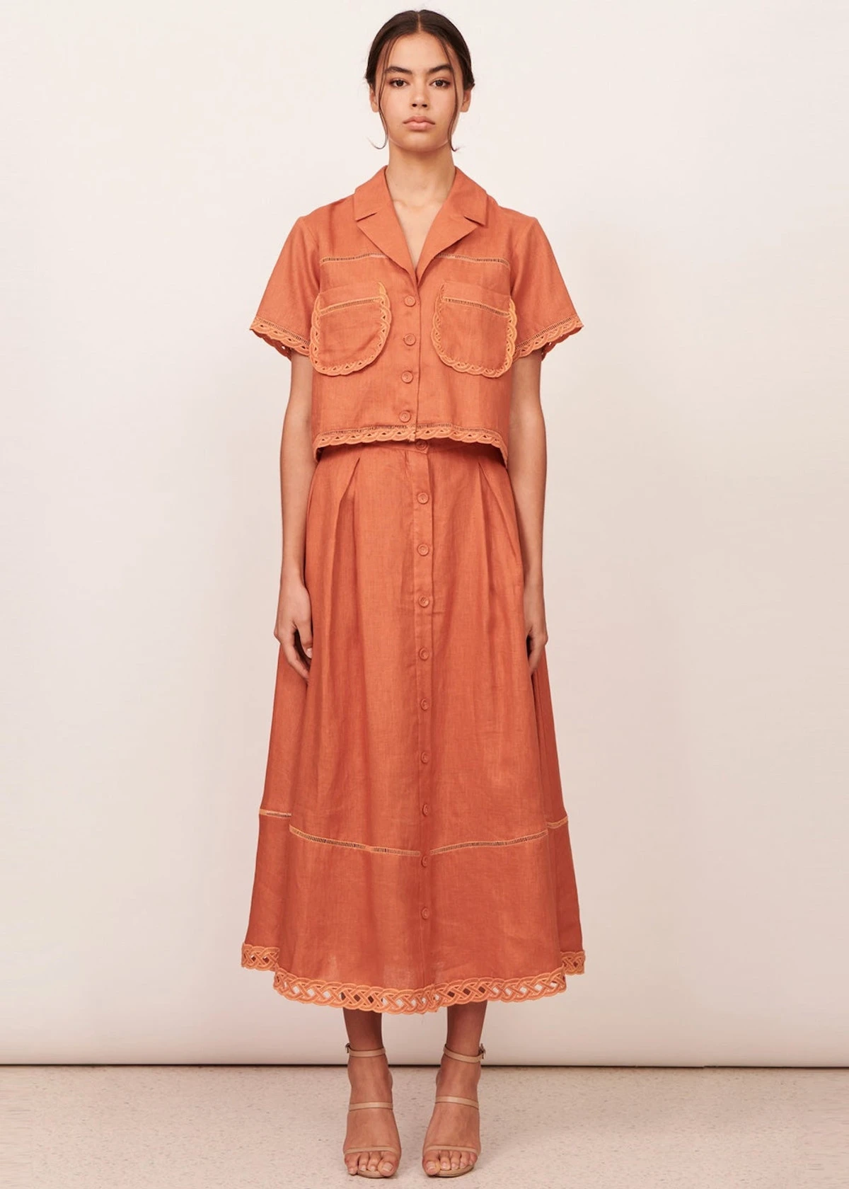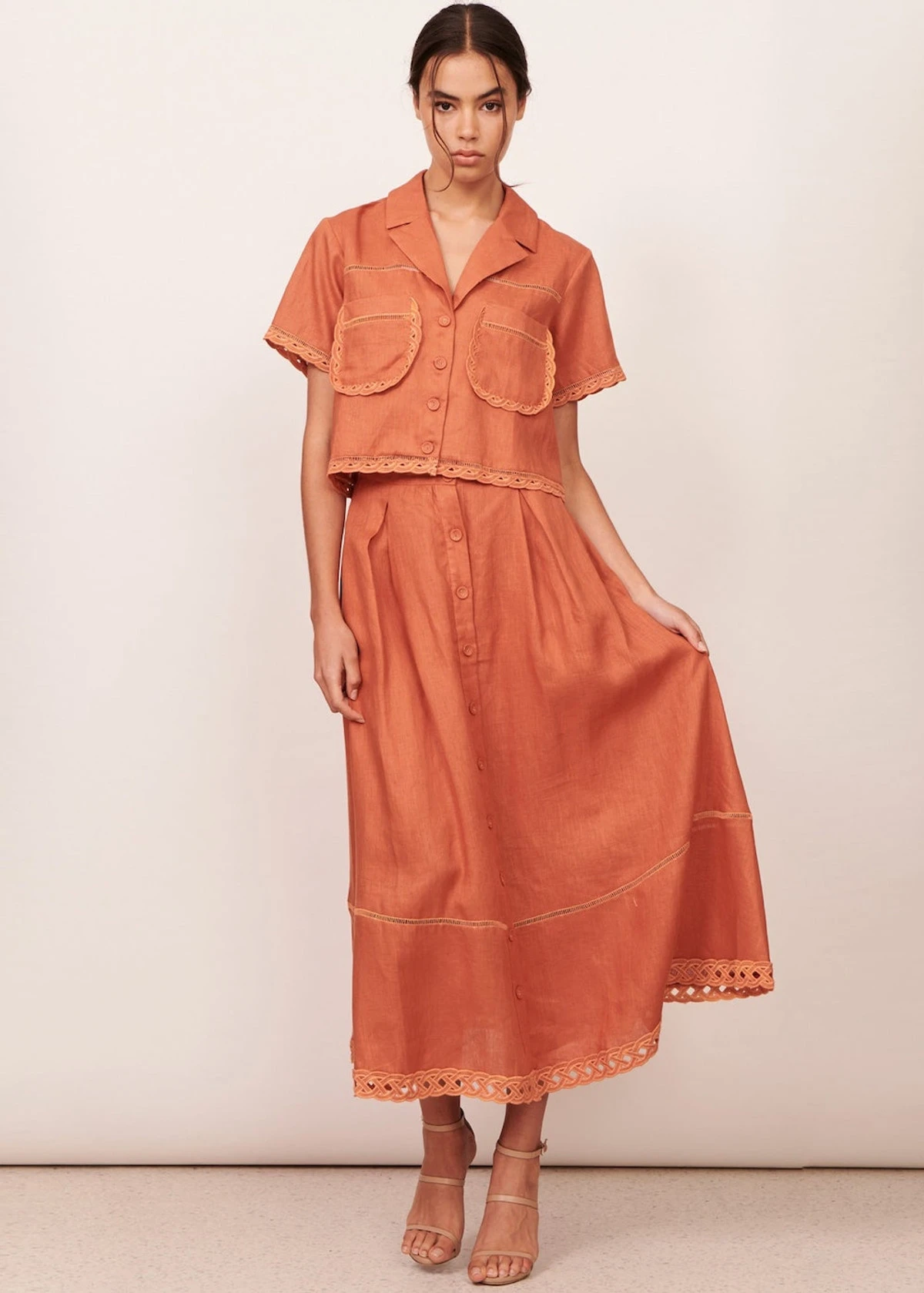 Made from linen with femme lace inserts and edges, the Elodie Linen Skirt is perfect for dressing up or down.