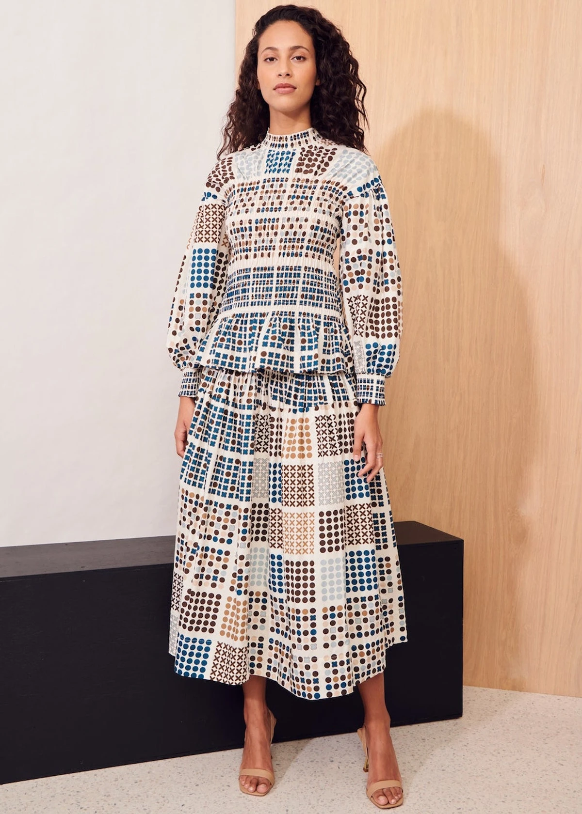 Featuring our vintage inspired Four Square Print, the Four Square Skirt is a stunning piece for all seasons in tones of white, ink, chocolate and pool.