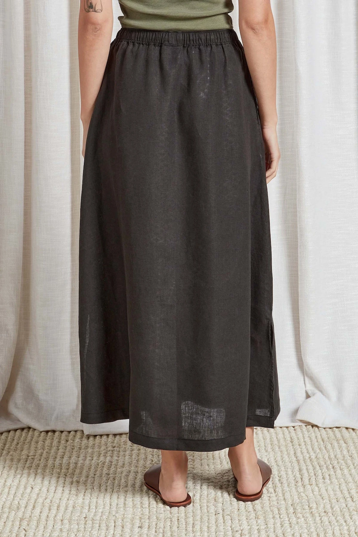 A timeless summer skirt silhouette constructed using a premium breezy 100% linen. Has been carefully washed to perfection to achieve the right amount of fade and premium handfeel along with a refined feminine elastic waist band for extra comfort.