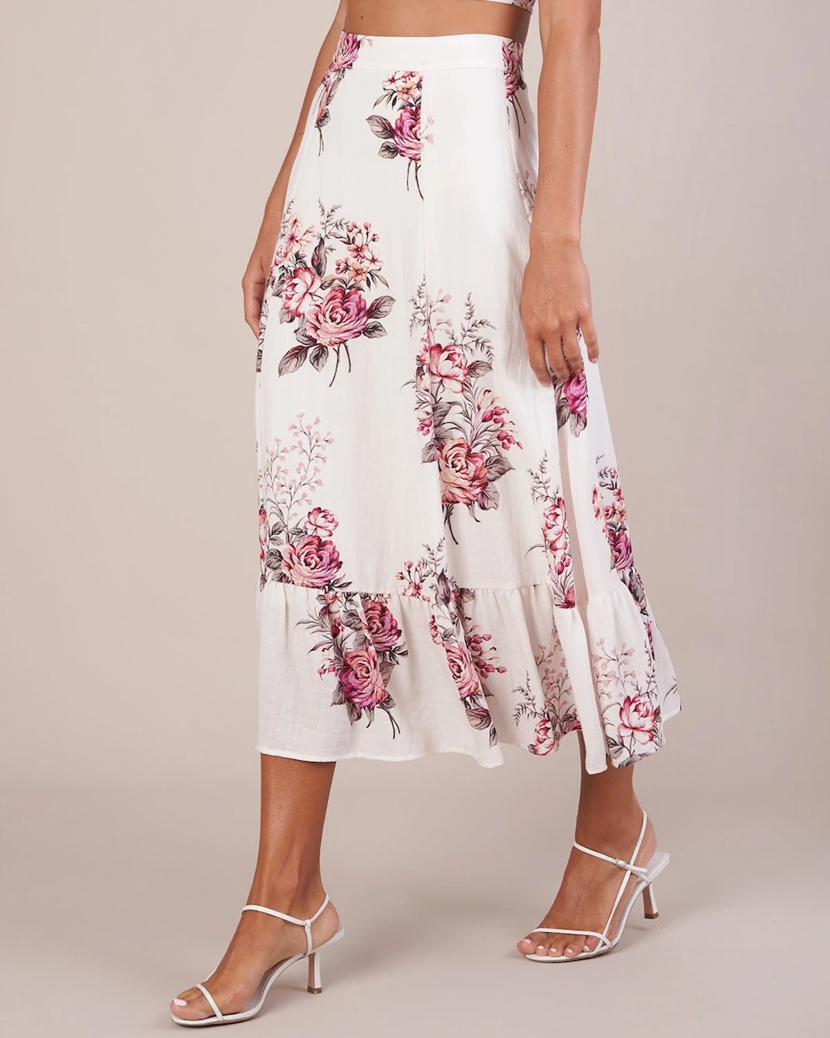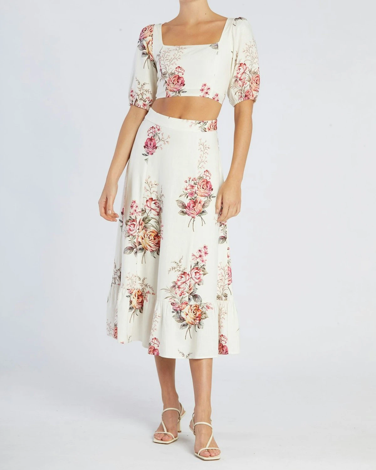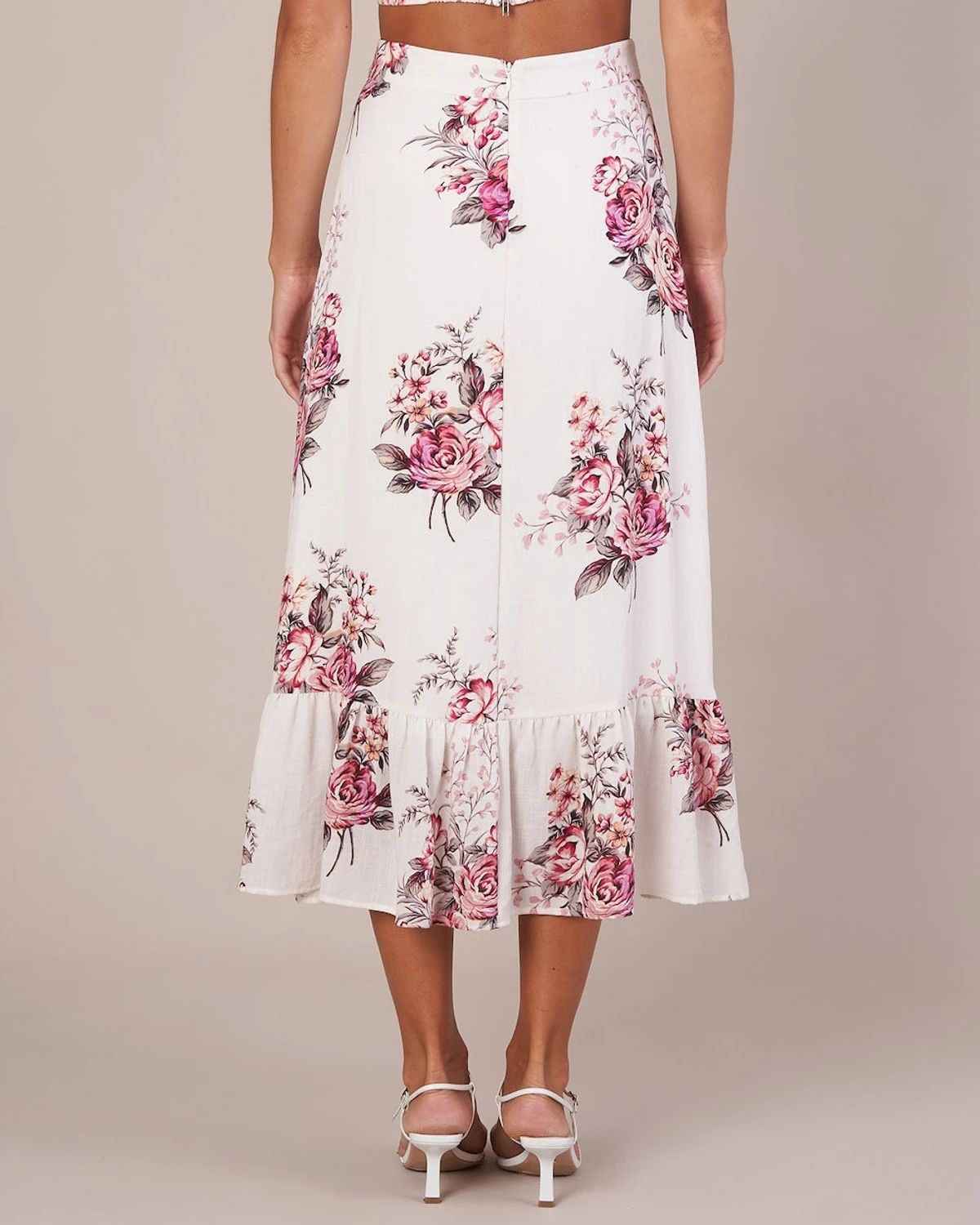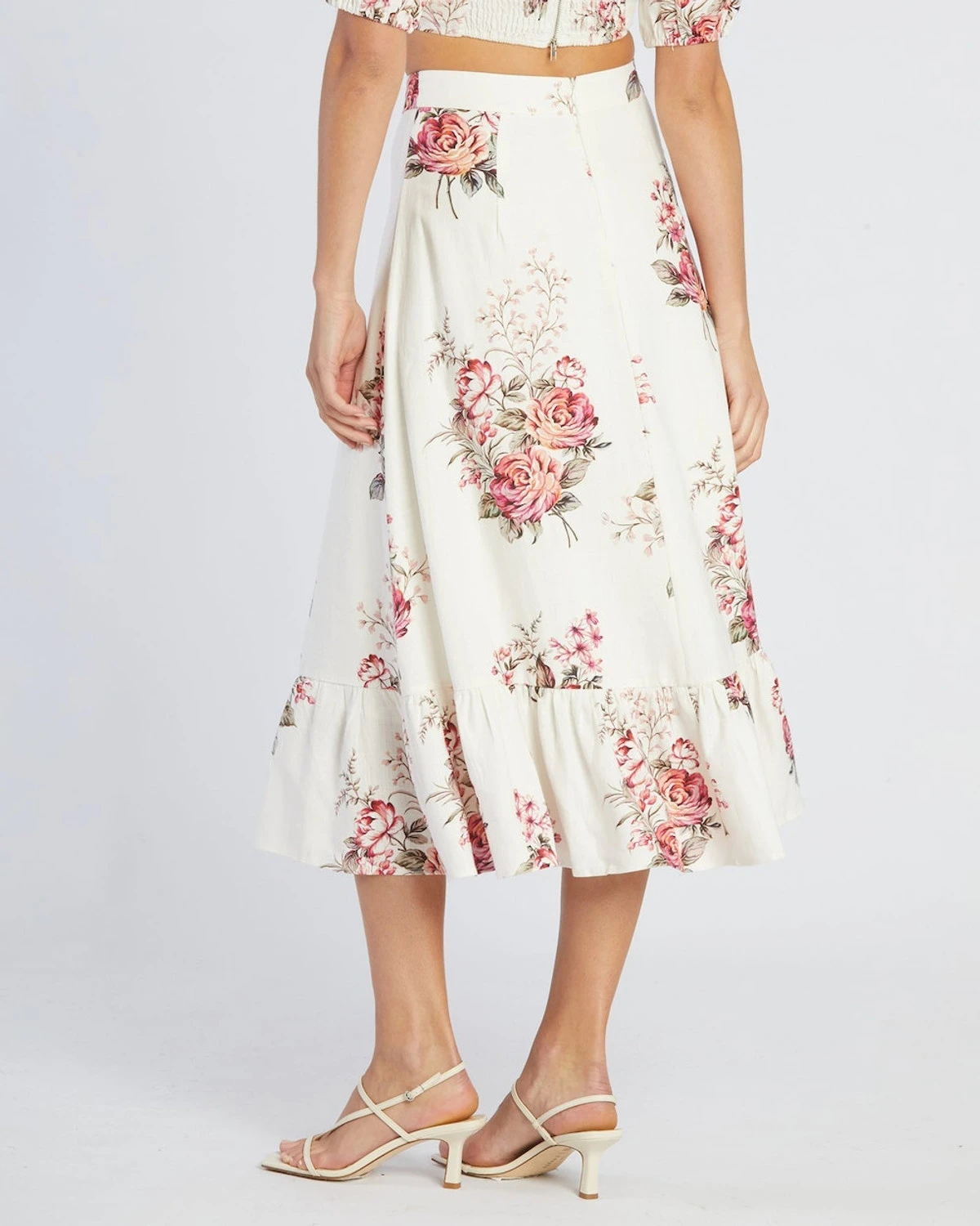 The Heartloom Rose Skirt stuns with divine florals that capture this season’s likeness. Crafted from a blend of cotton and linen, this beautiful skirt is defined by blushed toned roses rendered on a white base. It features a high waisted fit, invisible zipper and a classic a-line cut. This crop makes the perfect set when paired with our matching Heartloom Rose Crop Top.