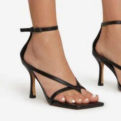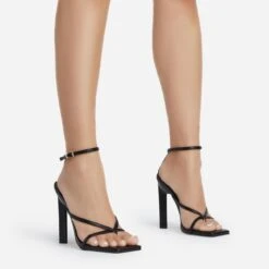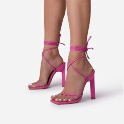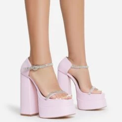 EGO Peggie Diamante Strap Open Square Toe Extreme Platform Block Heel In Pink Faux Leather