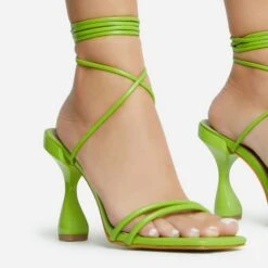 EGO Romantic Diamante Detail Lace Up Square Toe Clear Perspex Sculptured Heel In Orange Faux Leather
