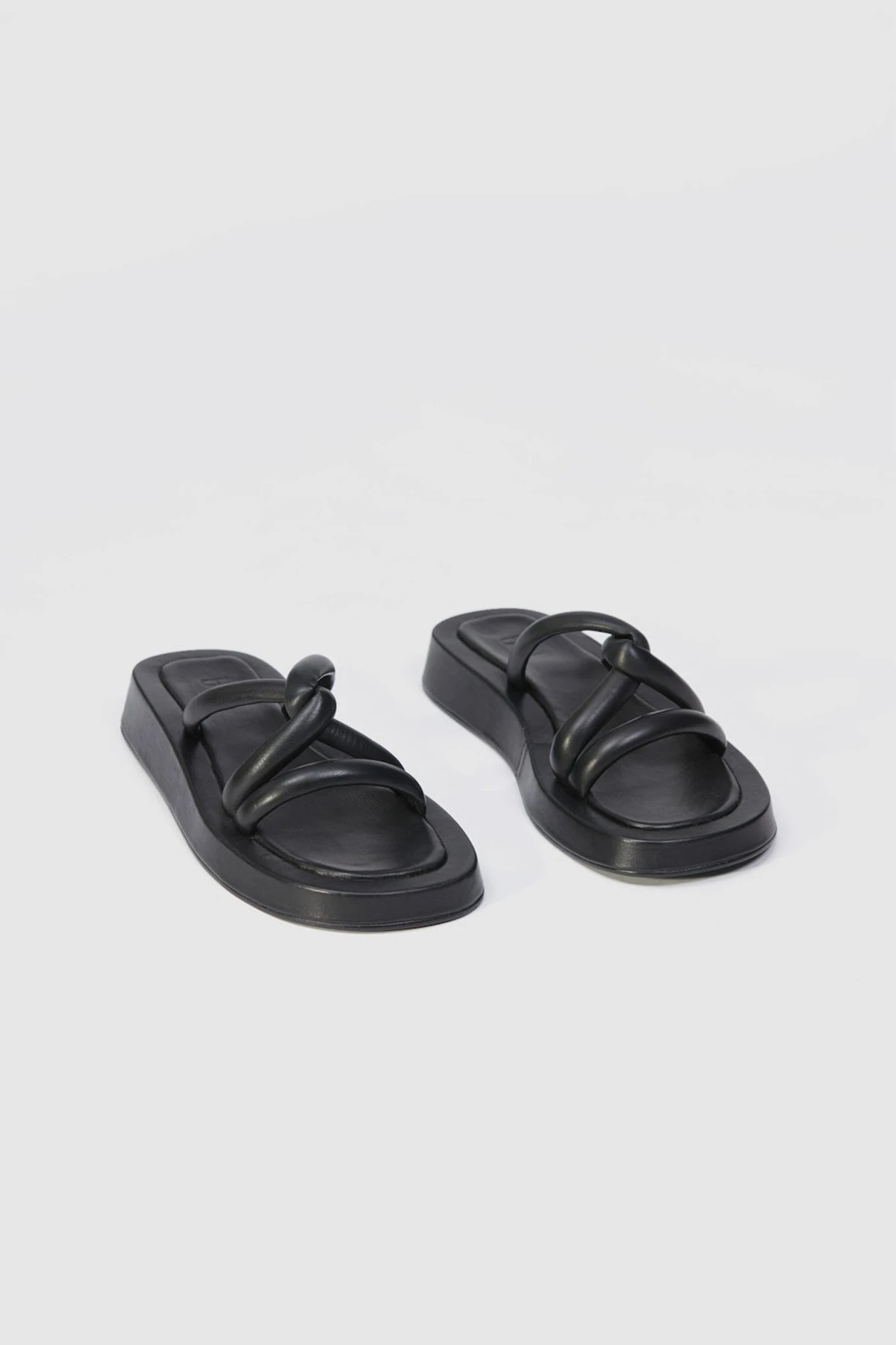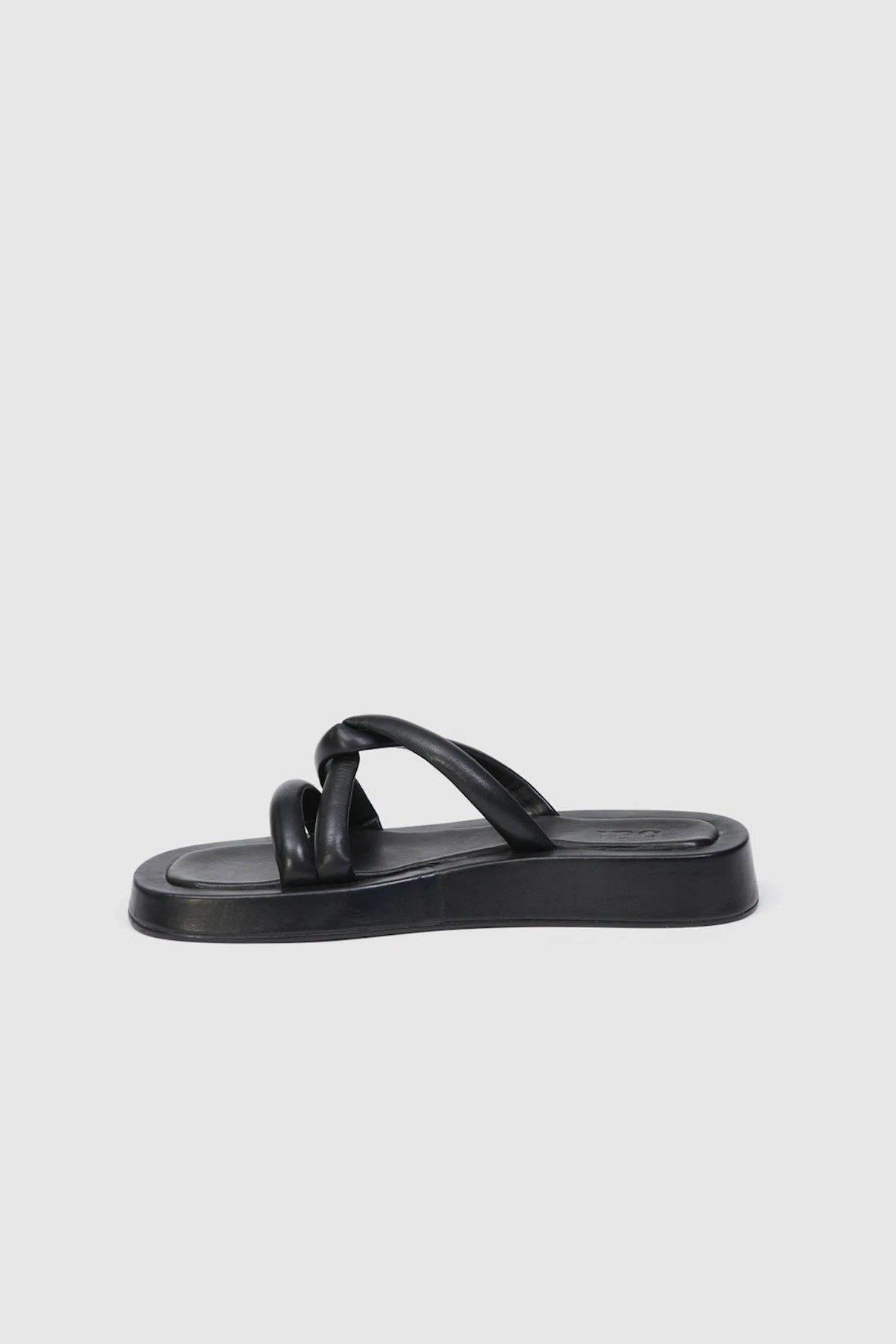 The Mambo Sandal is a platformed sandal with padded cross-over leather straps.