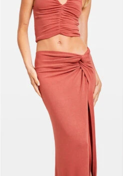 The Marilla skirt features a flattering high waisted fit with a skinny waistband and thigh high split. It is cut from a luxe, vegan leather and fastened at the centre back with a zipper.