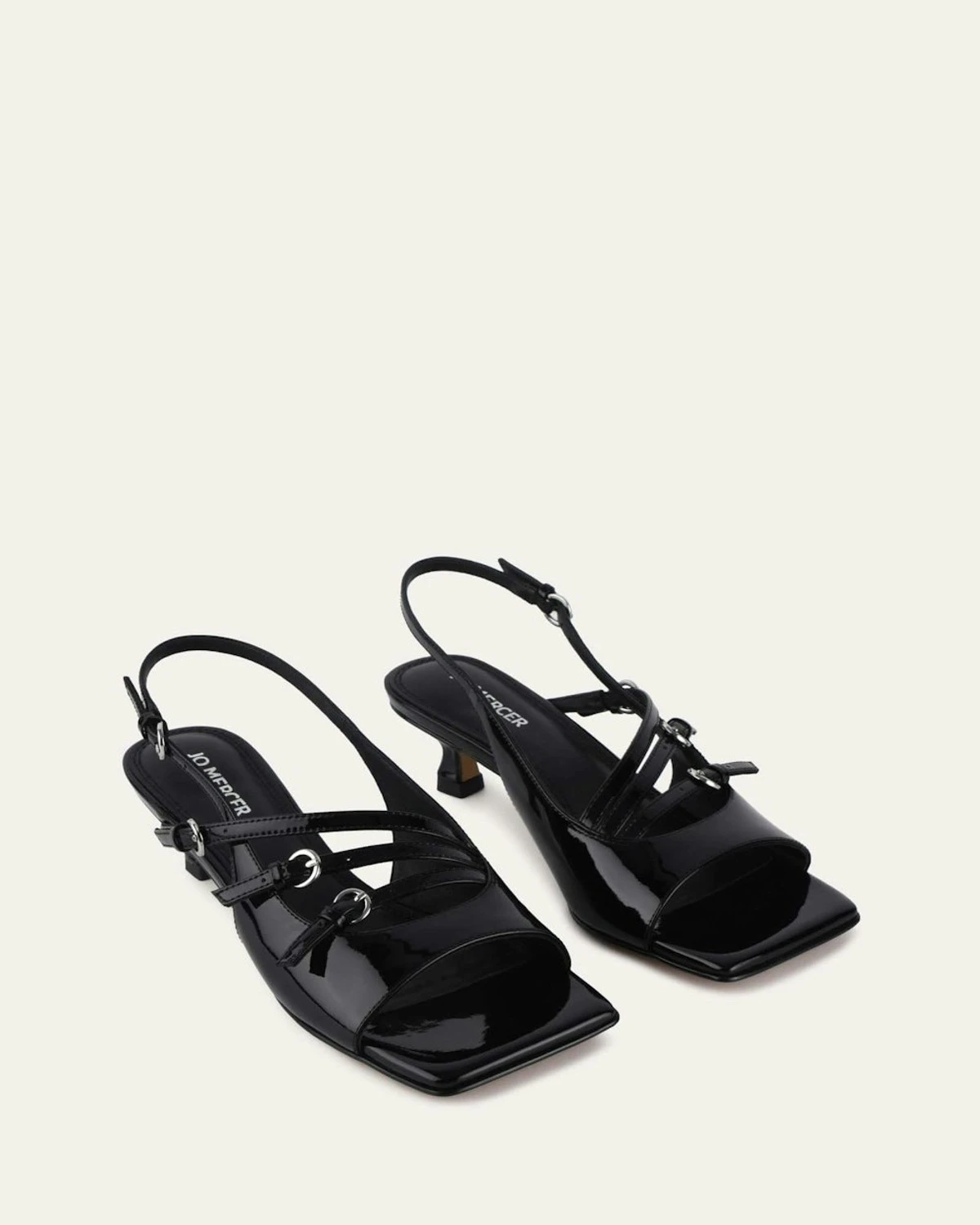 Sister to REVOLVE, MONICA earns its spot in the limelight too. The kitten heel slingback features an asymmetrical strap detail, exposed softly squared toe, wrapped in a soft kid leather upper and lining. Style MONICA with cropped hemlines to hero the 4 straps with metal buckles.