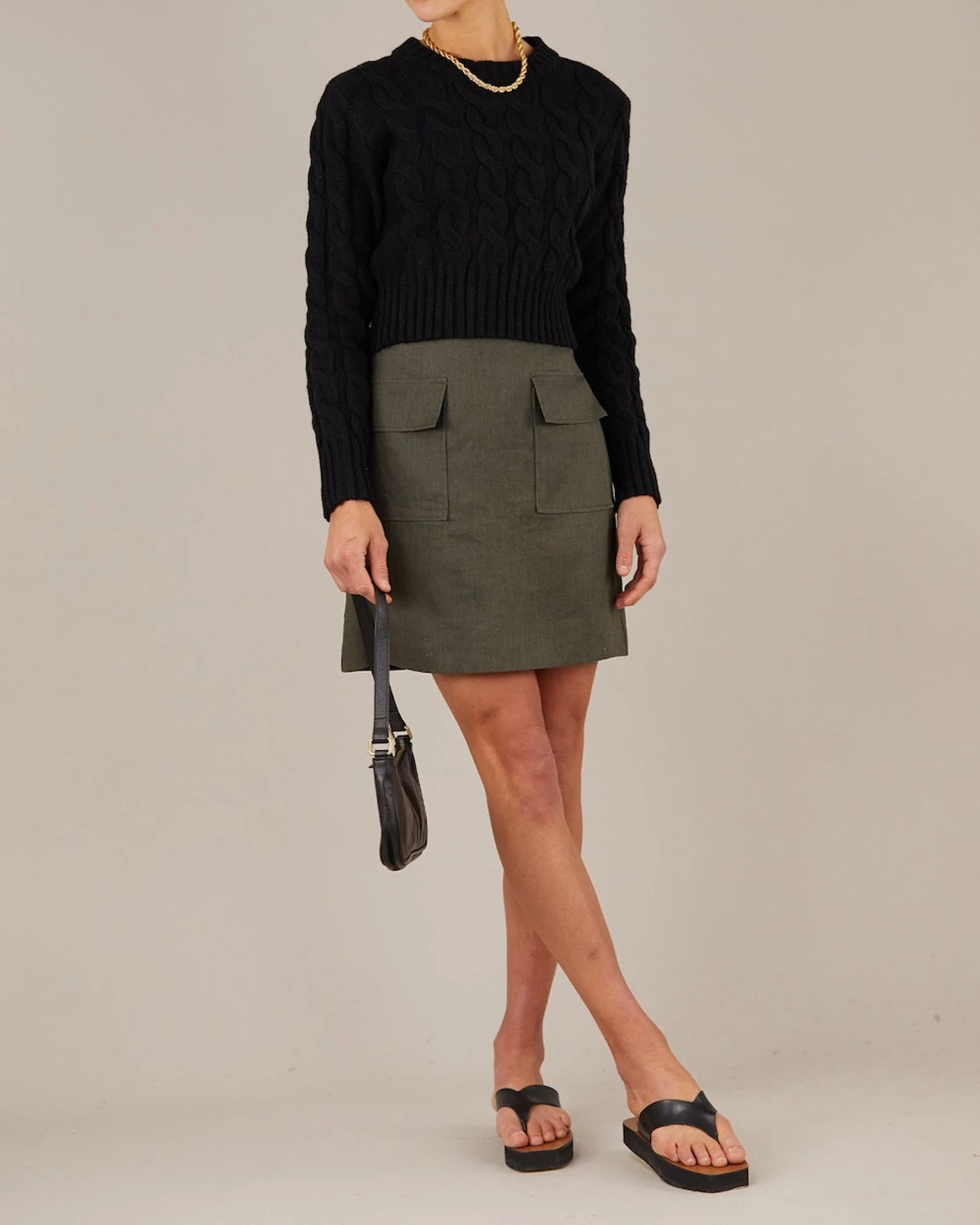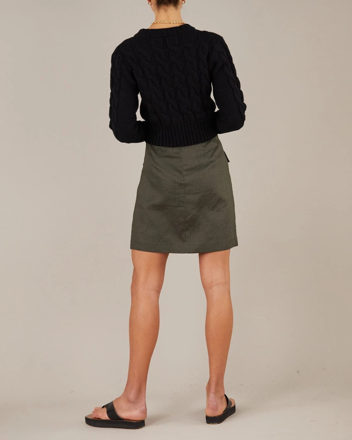 Inspired by clean, functional lines, the Stockton Linen Mini Skirt has been crafted from 100% luxurious and breathable linen in a simple straight cut. Boasting a high-rise tailored mini fit with patch pockets, this piece is designed to be worn transeasonally either casually or formally, paired back with a preferred tank top or suit blazer.
