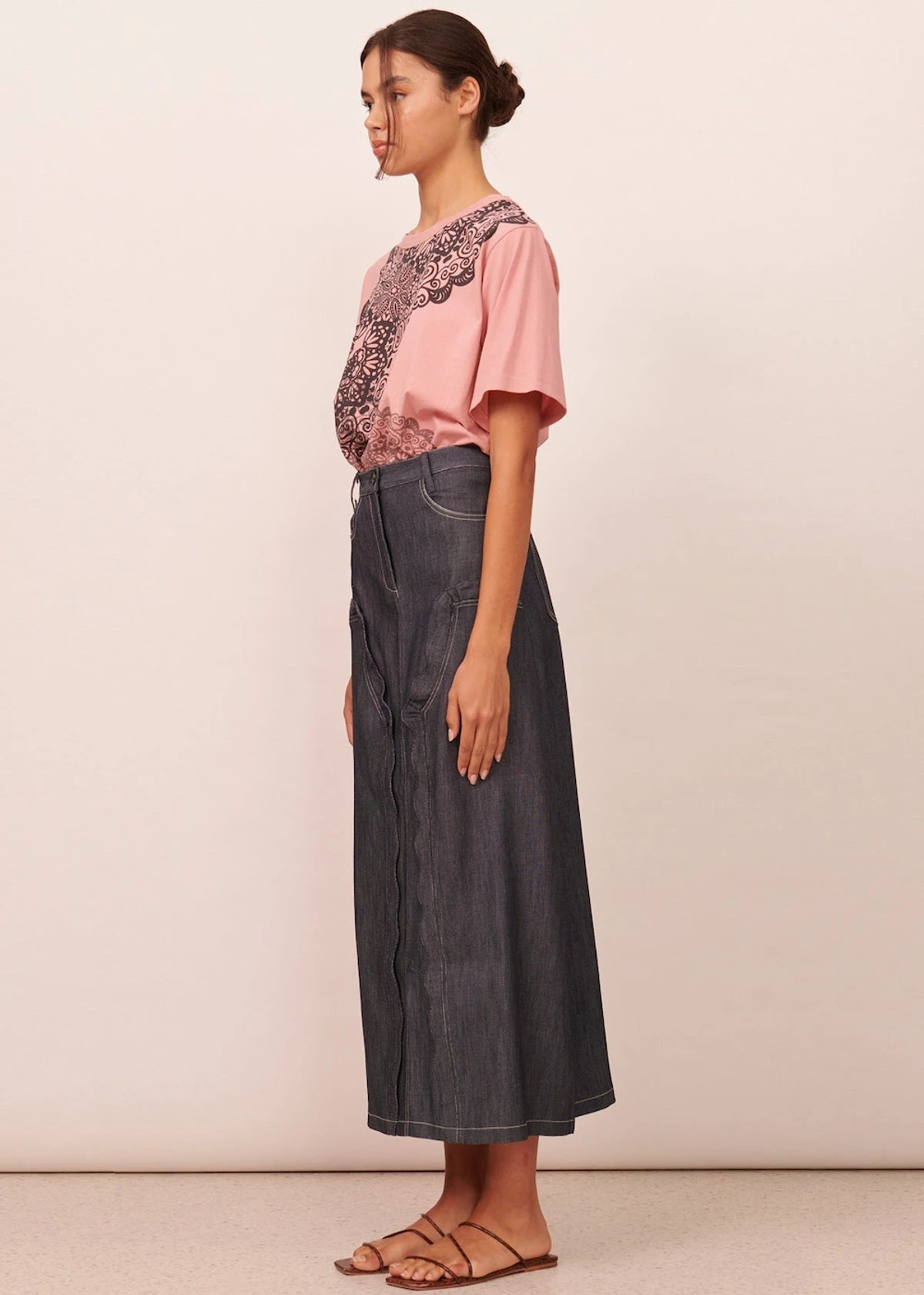 You’ll be living in the Thea Denim Skirt this Spring – the perfect transseasonal piece, made of pure cotton for breathability and featuring femme scalloped detailing.