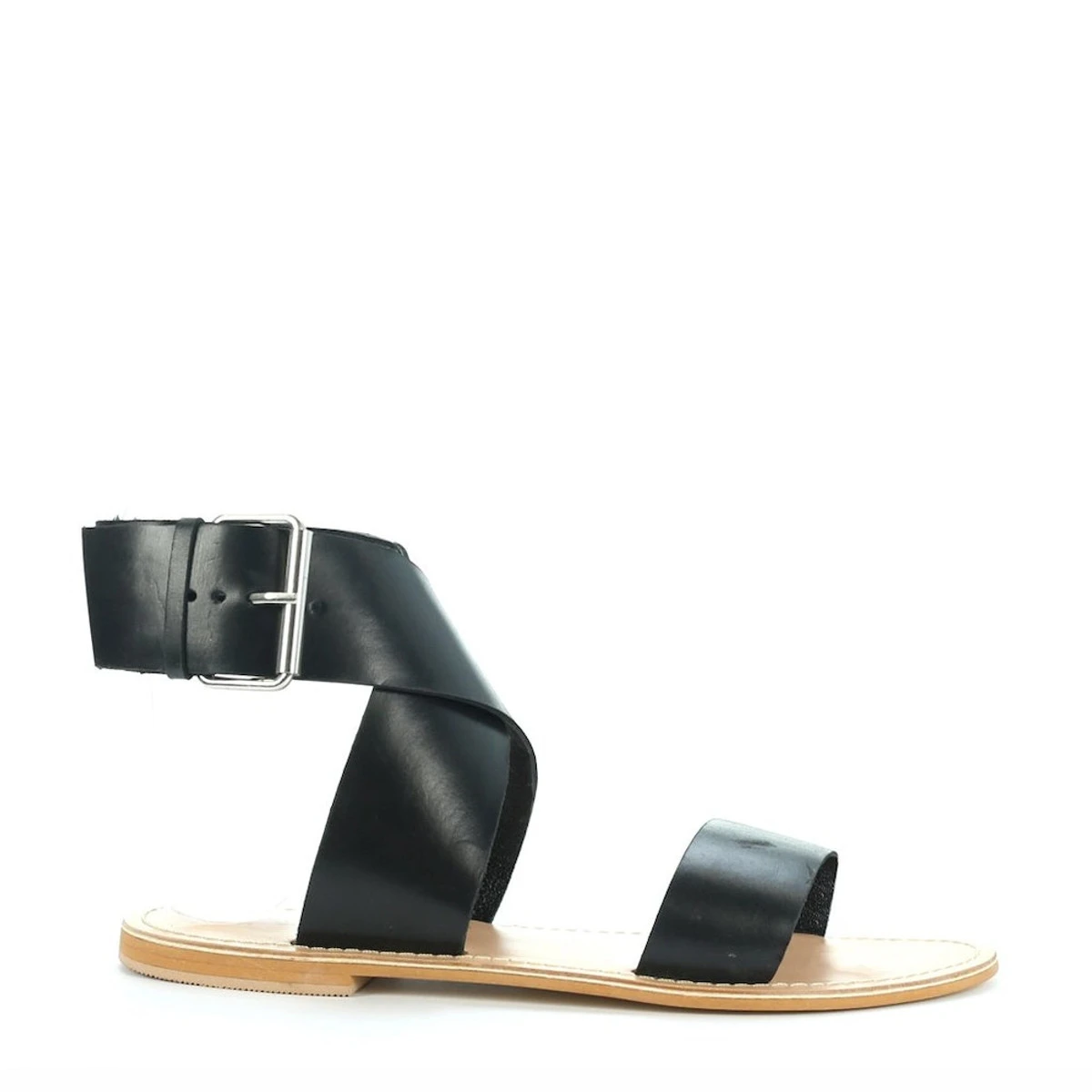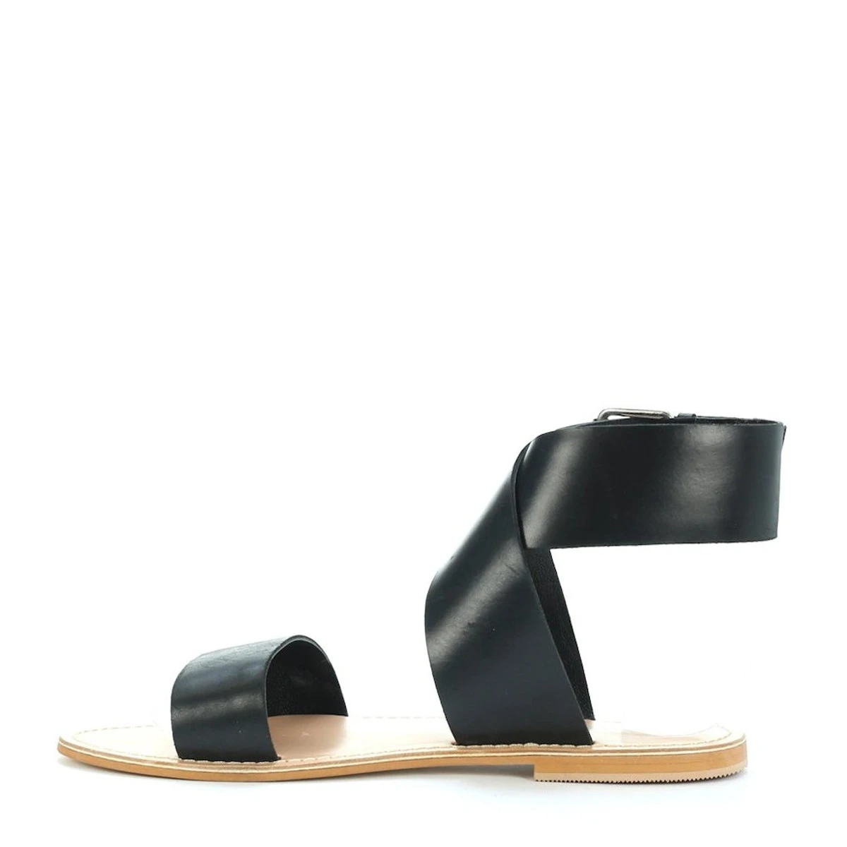 A tastefully crafted leather design, the TRIUMPH sandals, a staple pair that exudes class and flair. A perfect match with chic summer-style dresses and skirts, for a sophisticated look suited for both the day and night. The pair flashes a burnished ankle buckle, and the upper straps are modelled in an exquisitely polished black colour.